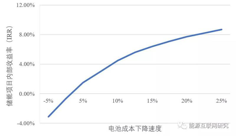 電池成本下降速度對內(nèi)部收益率的影響如下圖所示。