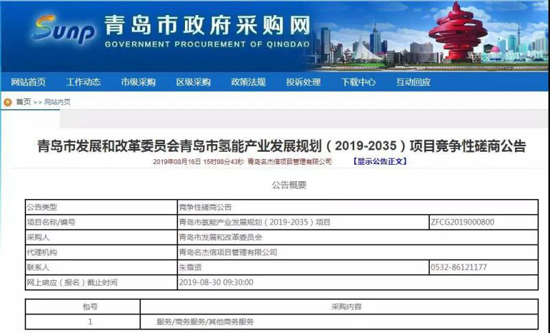 中國儲能網(wǎng)訊:近日,山東省青島市發(fā)改委發(fā)布了《青島市氫能產(chǎn)業(yè)發(fā)展規(guī)劃(2019-2035)》的招標(biāo)公告,這意味著青島市的氫能規(guī)劃將在不久之后推出。在美錦能源氫能小城與萊西氫能產(chǎn)業(yè)園之后,青島市氫能產(chǎn)業(yè)將得到進(jìn)一步的發(fā)展。