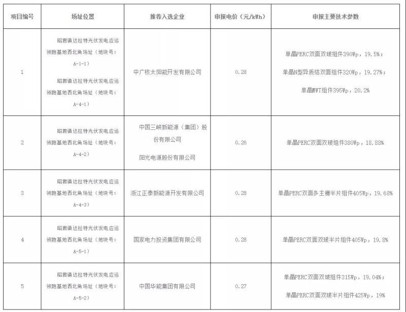 根據(jù)達(dá)拉特光伏發(fā)電領(lǐng)跑獎(jiǎng)勵(lì)激勵(lì)基地2019年競(jìng)爭優(yōu)選工作方案,達(dá)拉特旗人民政府組織達(dá)拉特光伏發(fā)電領(lǐng)跑獎(jiǎng)勵(lì)激勵(lì)基地競(jìng)爭優(yōu)選,現(xiàn)將基地內(nèi)各項(xiàng)目排名第一的推薦投資企業(yè)評(píng)優(yōu)結(jié)果公示如下:
