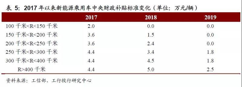 2019年國(guó)內(nèi)新能源汽車補(bǔ)貼出現(xiàn)大幅退坡,盡管補(bǔ)貼下調(diào)在市場(chǎng)預(yù)期之中,但我們認(rèn)為這仍將對(duì)2019下半年國(guó)內(nèi)新能源汽車市場(chǎng)有不小的沖擊。2019年補(bǔ)貼新政發(fā)布較晚,遲至3月底才發(fā)布,設(shè)置了為期3個(gè)月的過渡期,正式實(shí)施是在2019年7月份開始。與往年相比,2019年的新能源補(bǔ)貼政策有三個(gè)方面的顯著變化:一是補(bǔ)貼額大幅下調(diào),無論是乘用車還是商用車,補(bǔ)貼下調(diào)力度都較大。新能源乘用車直接取消了續(xù)航里程250千米以下車型的補(bǔ)貼,250千米以上續(xù)航里程車型補(bǔ)貼額減少50%以上,同時(shí)將2018年的五級(jí)分檔改為三級(jí)。新能源客車方面,補(bǔ)貼下降幅度也在50%以上,快充類大型純電動(dòng)客車2018年最高可獲補(bǔ)貼額13萬元,但2019年新政后則下降至6.5萬元。二是政策明確了過渡期后新能源乘用車將不再享受地方政府補(bǔ)貼,考慮到目前地方補(bǔ)貼大致為國(guó)補(bǔ)的50%左右,因此對(duì)于新能源乘用車而言退坡幅度和力度更大。三是獲得補(bǔ)貼的門檻繼續(xù)提高,2018年純電動(dòng)汽車搭載動(dòng)力鋰電池密度需要達(dá)到105瓦時(shí)/千克即可獲得補(bǔ)貼,但2019年該標(biāo)準(zhǔn)提高到125千瓦時(shí)/千克,這促使乘用車企業(yè)搭載能量密度更高的動(dòng)力鋰電池。