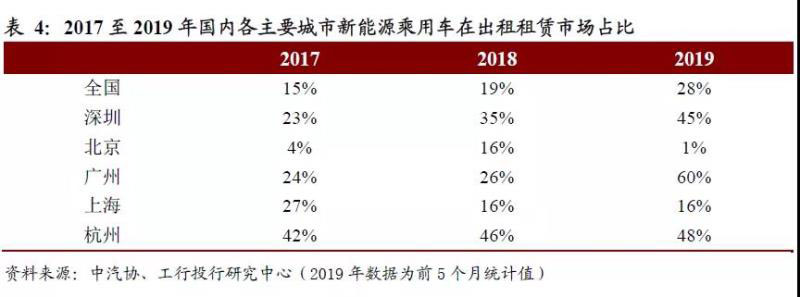 而即使是在限行城市,我們看到大量的新能源乘用車銷售卻是集中在運(yùn)營(yíng)領(lǐng)域而非私人消費(fèi)領(lǐng)域。根據(jù)2019年前5個(gè)月的數(shù)據(jù)顯示,國(guó)內(nèi)新能源乘用車銷量中有高達(dá)28%的比例集中在出租租賃市場(chǎng),相比2017和2018年而言,新能源乘用車在出租租賃市場(chǎng)的占比不是下降而是上升了,特別是在深圳、廣州、杭州等城市該比例超過40%。大比例的新能源乘用車銷售集中在出租租賃市場(chǎng),一方面反映了行政力量成為驅(qū)動(dòng)新能源乘用車消費(fèi)的關(guān)鍵,而另一方面則反映了新能源乘用車在私人消費(fèi)領(lǐng)域?yàn)榭蛻艚邮芏炔桓叩膶擂维F(xiàn)實(shí)。