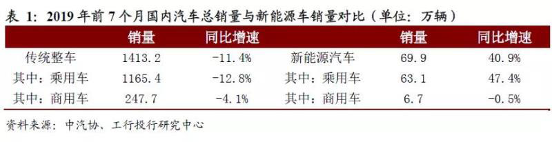 2019年國(guó)內(nèi)新能源汽車?yán)^續(xù)保持增長(zhǎng)態(tài)勢(shì),特別是在傳統(tǒng)燃油車出現(xiàn)負(fù)增長(zhǎng)的背景下,新能源汽車的正增長(zhǎng)似乎成為黯淡車市中的一抹光亮。2019年前7個(gè)月國(guó)內(nèi)新能源汽車?yán)塾?jì)銷量為69.9萬輛,同比增長(zhǎng)40.9%,其中新能源乘用車?yán)塾?jì)銷量63.1萬輛,同比增長(zhǎng)47.7%,但新能源商用車?yán)塾?jì)銷量6.7萬輛,同比下降0.5%。而同期國(guó)內(nèi)整車市場(chǎng)銷量為1413.2萬輛,同比大幅下滑11.4%,其中乘用車市場(chǎng)銷量下滑12.8%。單純從數(shù)據(jù)來看,新能源汽車產(chǎn)業(yè)表現(xiàn)似乎不錯(cuò),但如果與往年相比,產(chǎn)業(yè)增速卻已呈現(xiàn)明顯放緩的勢(shì)頭。中國(guó)汽車工業(yè)協(xié)會(huì)在7月份將新能源汽車的年度銷售目標(biāo)由160萬輛下調(diào)至150萬輛,顯示出這種擔(dān)憂。