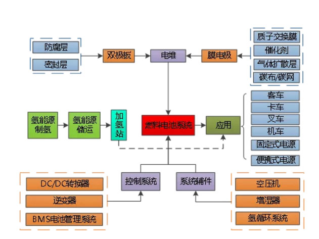5、氫燃料電池動(dòng)力系統(tǒng)產(chǎn)業(yè)鏈。圍繞電堆、燃料電池系統(tǒng)等,加快攻克質(zhì)子交換膜、催化劑、高品質(zhì)碳紙等關(guān)鍵材料及工藝,提高雙極板、膜電極、擴(kuò)散層、電堆及其關(guān)鍵零部件生產(chǎn)技術(shù)水平,提升空壓機(jī)、氫循環(huán)系統(tǒng)、燃料電池輔助系統(tǒng)等產(chǎn)品品質(zhì)。