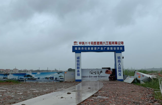 進(jìn)入長江項(xiàng)目所在地,一座臨時搭起的方形簡易大門上寫著“南海丹灶新能源產(chǎn)業(yè)廠房建設(shè)項(xiàng)目”的大字。這里將是長江項(xiàng)目未來的生產(chǎn)車間。