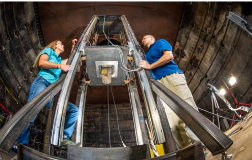 測試的電池放在用螺栓固定在稱重傳感器上的鋼制托盤中,以測量落到底部的沖擊力,而產生200磅以上的沖擊力需要提升到8.8英尺的高度。研究人員按下按鈕就可以釋放托盤,電池開始跌落。研究人員通過連接到電池和鐵塔的傳感器測量速度、重力、溫度、電壓。附近的攝像機記錄跌落和撞擊造成的損害。這些數據會同步傳遞到拖車中的計算機上。