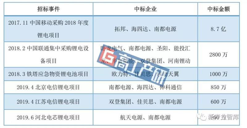 2)鐵塔公司預(yù)計在2019年將消納至少5GWh的梯次鋰電池和新生鋰電池,此鋰電池主要應(yīng)用在原4G基站鉛酸電池的替換,5GWh的需求量將更一步帶動中國通訊后備鋰電池的增長。