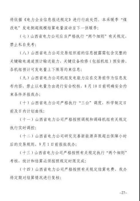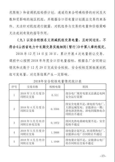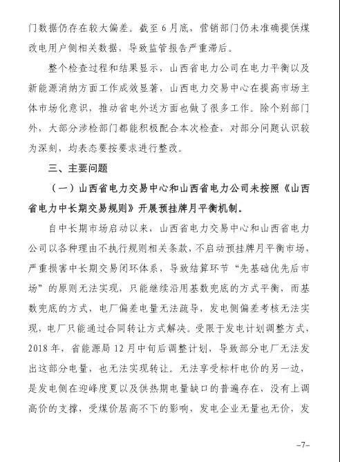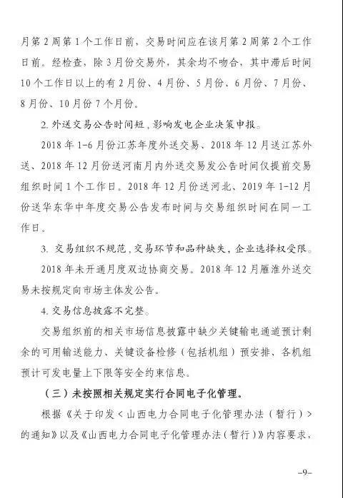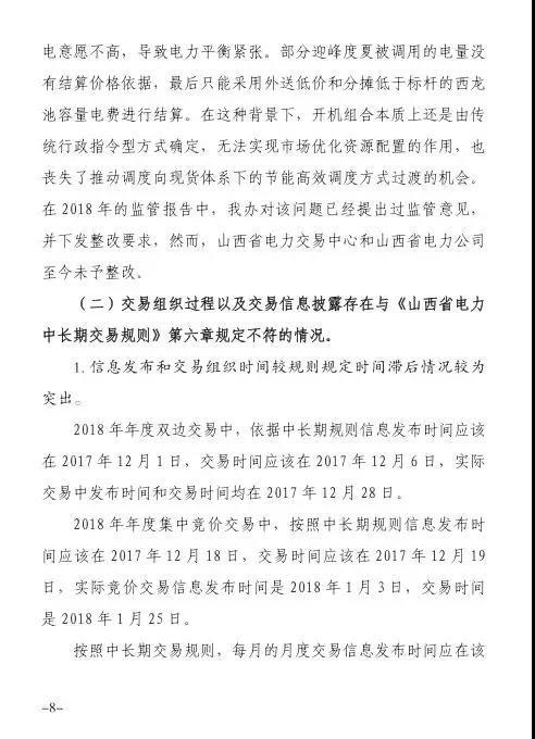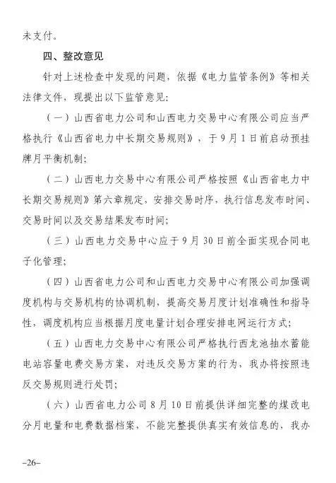 針對(duì)發(fā)現(xiàn)的問(wèn)題,報(bào)告提出監(jiān)管意見(jiàn):山西省電力公司和山西電力交易中心有限公司于9月1日前啟動(dòng)預(yù)掛牌月平衡機(jī)制;9月30日前,山西電力交易中心將全面實(shí)現(xiàn)合同電子化管理等。