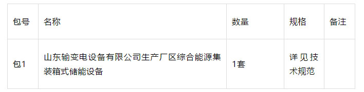 山東電力設(shè)備公司“山東輸變電設(shè)備有限公司生產(chǎn)廠區(qū)綜合能源集裝箱式儲能設(shè)備”詢價采購公告