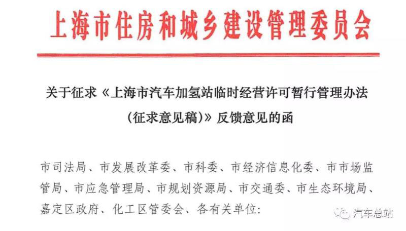 為加快加氫站的建設(shè)、審批和管理辦法進(jìn)行協(xié)同工作,在上海市場發(fā)展改革委、市財(cái)政、市經(jīng)信委、市科委、市規(guī)劃資源局、市生態(tài)環(huán)境局、市交通委、市應(yīng)急局、市市場監(jiān)管局等多部門配合,上海市住建委牽頭起草了《上海市汽車加氫站臨時(shí)經(jīng)營許可暫行管理辦法(征求意見稿)》(以下簡稱《上海加氫站管理辦法》或該辦法),于2019年7月6日發(fā)布。