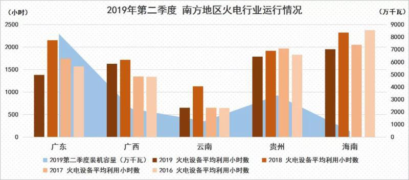 從火電設(shè)備平均利用小時數(shù)上看,南方地區(qū)出現(xiàn)不同程度的下滑,其中廣東、云南、海南下滑幅度分別高達(dá)772小時、475小時、374小時,廣西、貴州下滑幅度略小,分別為86小時、133小時,但較去年同期下滑幅度仍然明顯。