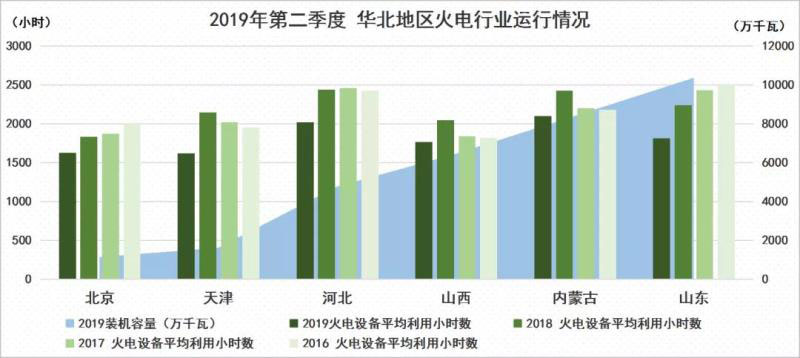 從火電設(shè)備平均利用小時數(shù)上看,華北地區(qū)均出現(xiàn)明顯下滑,北京、天津、河北、山西、內(nèi)蒙古、山東分別同比下滑206小時、528小時、422小時、278小時、327小時、425小時。