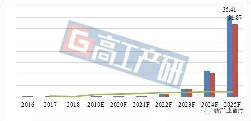 2019年、2022年以及2025年的電動(dòng)船舶鋰電化滲透率按照0.035%、0.55%、18.5%的電動(dòng)化率計(jì)算,截至2025年電動(dòng)船舶用鋰電池市場(chǎng)將達(dá)到35.41GWh。
