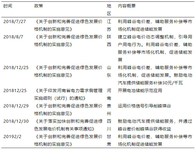 2018年7月2日,國家發(fā)改委還印發(fā)了《關于創(chuàng)新和完善促進綠色發(fā)展價格機制的意見》,旨在為電儲能設施參與削峰填谷增加補貼。目前已有江蘇、廣東、山東、貴州、甘肅、四川等地先后轉(zhuǎn)發(fā)了該文件,表示將加大峰谷電價支持力度(見表6)。同月,南方能監(jiān)局印發(fā)《廣西電力調(diào)峰輔助服務交易規(guī)則(征求意見稿)》。文件提出需求側(cè)調(diào)峰服務,對于參與響應的需求側(cè)用戶,會獲得相應的收益。
