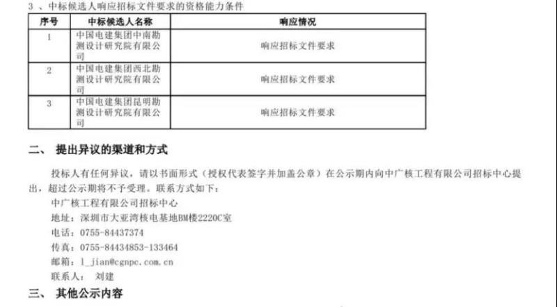 9月11日,中廣核貴州貞豐隴塔100MW光伏項目公示EPC總承包采購中標候選人。中國電建集團中南勘測設(shè)計研究院有限公司以單價4.427元瓦位列第一中標候選人,詳情如下: