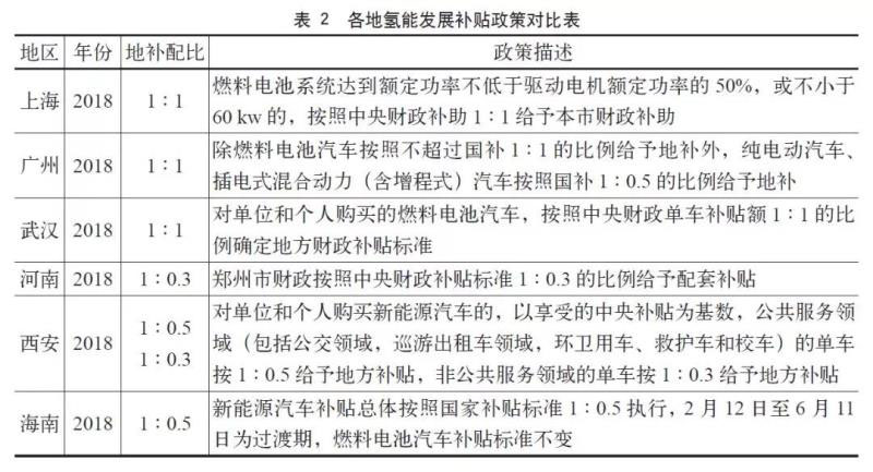 (2)北京、上海、武漢、蘇州、西安、海南、河南、廣東、重慶、深圳等省市先后出臺(tái)燃料電池汽車補(bǔ)貼政策,其中:深圳側(cè)重整車環(huán)節(jié)的補(bǔ)貼;佛山、中山側(cè)重加氫站環(huán)節(jié)的補(bǔ)貼;佛山對(duì)引進(jìn)氫能相關(guān)的新能源汽車企業(yè)還額外提供一次性獎(jiǎng)勵(lì)(見(jiàn)表2)。