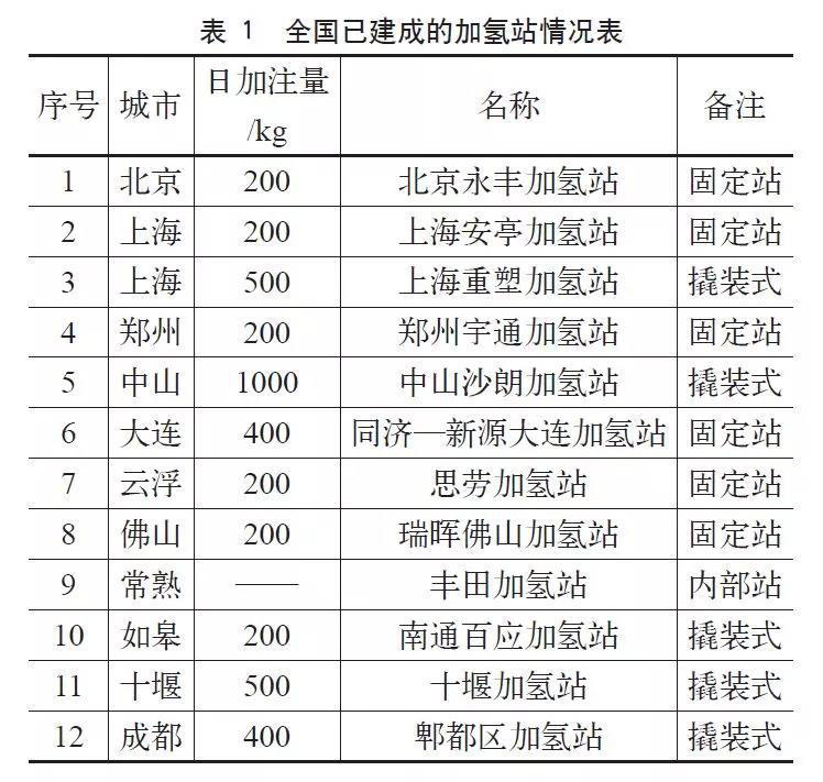 加氫環(huán)節(jié),2006年以來(lái),我國(guó)已建成加氫站12座,另有20余座加氫站在建(見(jiàn)表1)。