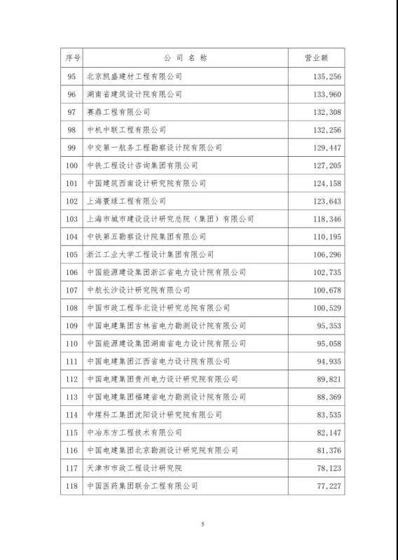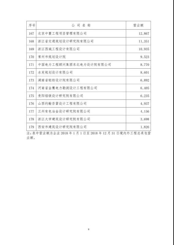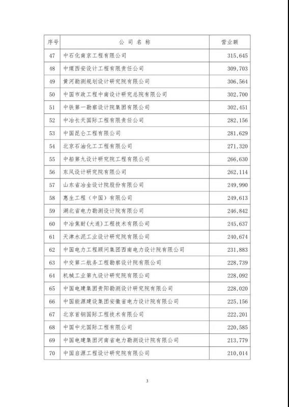 近日,中國勘察設(shè)計協(xié)會公布了《勘察設(shè)計企業(yè)工程項目管理和工程總承包營業(yè)額二〇一九年排序名單》,中國中材國際工程股份有限公司、中國石油工程建設(shè)有限公司、中石化洛陽工程有限公司以162.8億、157億和129.5億分列工程總承包營業(yè)額前三位。