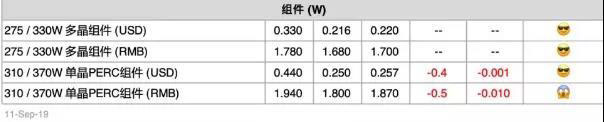 而在PVInfoLink9月11日的統(tǒng)計中,高效單晶組件與上一周相比價格下跌0.5%,0.01元。同時預估在本周高效單晶組件仍將出現(xiàn)下跌的趨勢,區(qū)間為0-3%,所以說此次三家公司的報價似乎并不與市場整體趨勢相符。