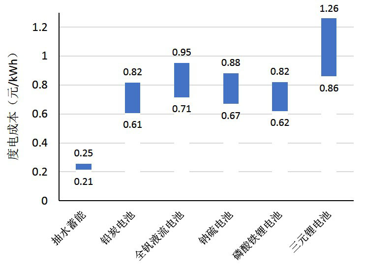 圖2 幾類典型儲能技術的度電成本