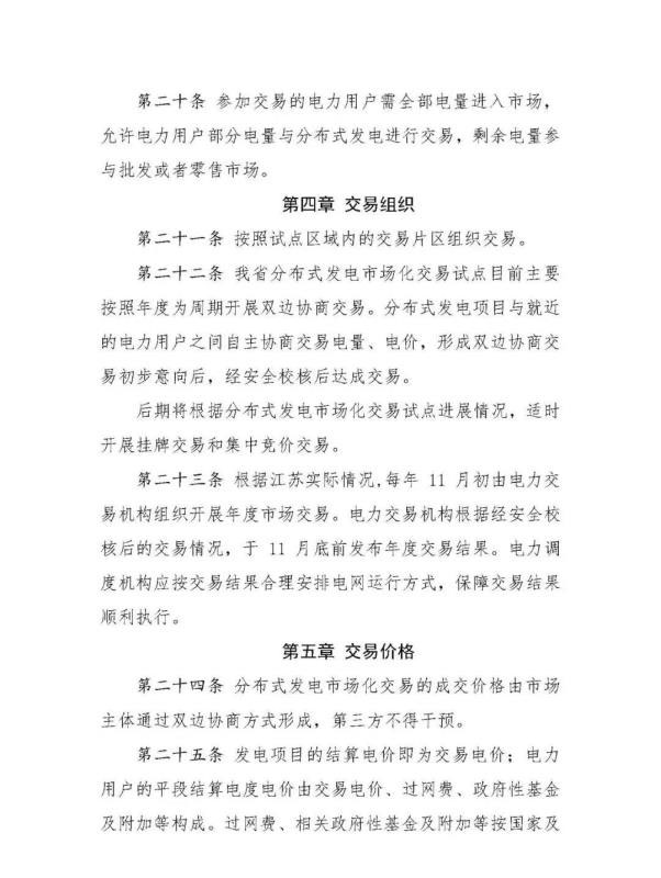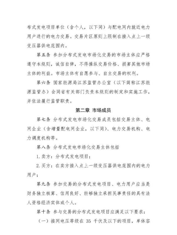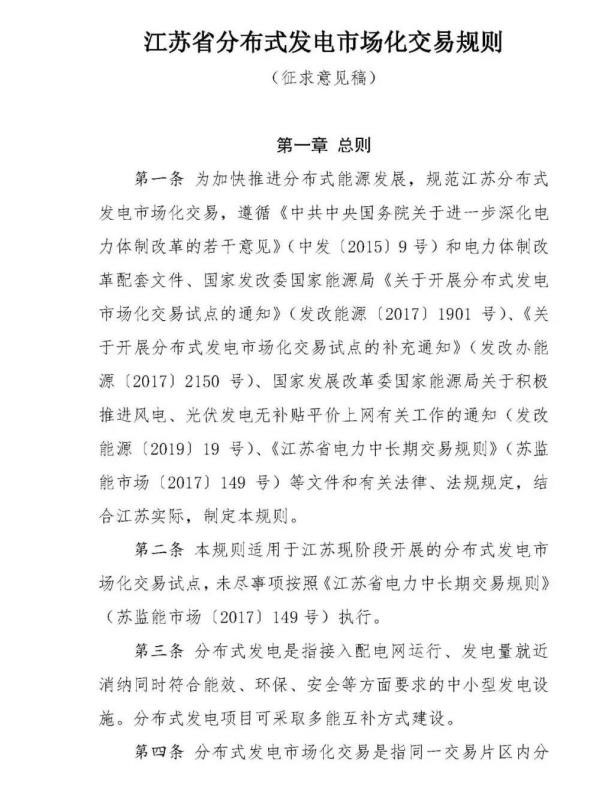 中國儲(chǔ)能網(wǎng)訊: 近日,江蘇省發(fā)布了《江蘇省分布式發(fā)電市場(chǎng)化交易規(guī)則》(征求意見稿)。根據(jù)文件: