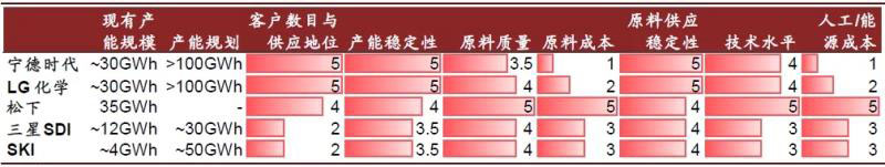 競爭要素對比:四大領(lǐng)域綜合比較,CATL與LG Chem占優(yōu)