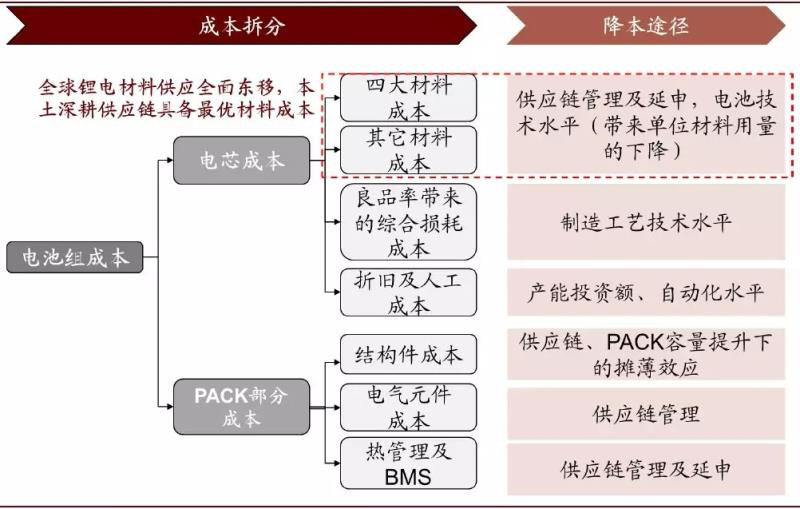 圖表: 動力電池成本由多維度構(gòu)成,四大材料成本最為關(guān)鍵