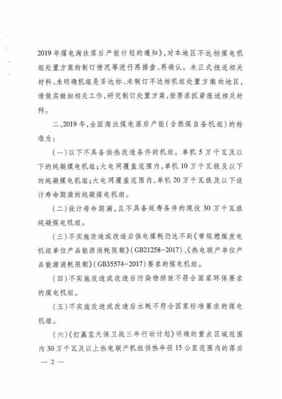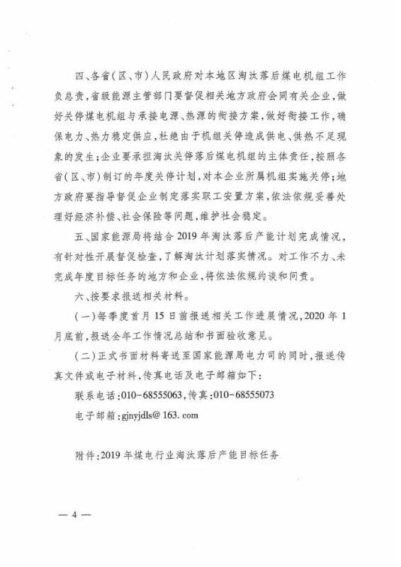 國家能源局關于下達2019年煤電行業(yè)淘汰落后產(chǎn)能目標任務的通知