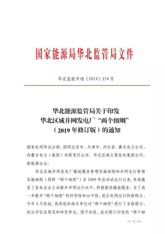 中國(guó)儲(chǔ)能網(wǎng)訊:9月25日,華北能監(jiān)局正式印發(fā)華北區(qū)域并網(wǎng)發(fā)電廠“兩個(gè)細(xì)則”(2019 年修訂版),要求自10月1日起正式執(zhí)行。以下為《華北區(qū)域并網(wǎng)發(fā)電廠輔助服務(wù)管理實(shí)施細(xì)則》全文。