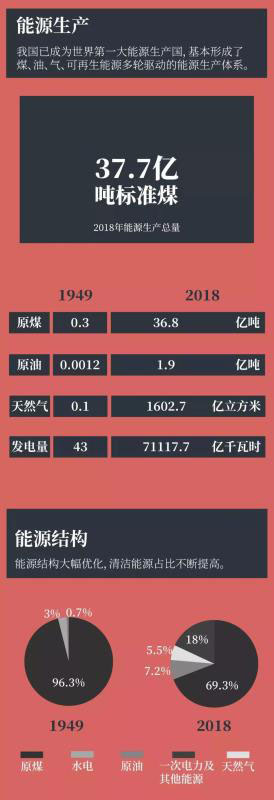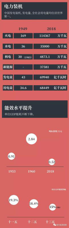中國儲(chǔ)能網(wǎng)訊:中華人民共和國成立70周年以來,能源人篳路藍(lán)縷,取得了不俗的成績。1949年,全中國發(fā)電量僅有43億千瓦時(shí),平均到當(dāng)時(shí)的5.4億人口上,相當(dāng)于每個(gè)中國人只能分到八度電。那是一個(gè)普通人連煤油燈都要省著點(diǎn)的時(shí)代。今天的中國已經(jīng)不可同日而語,來和eo一起看看,70年來能源人做到了什么!