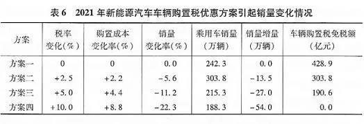 綜合比較四個方案,實施方案一的汽車銷量最高,但同時需要的財政資金也最高(減稅額度亦可視為財政資金);實施方案四無須財政資金投入,但對銷量影響較大。綜合考慮財政資金需求和市場影響兩方面因素,建議2021年之后仍能對新能源汽車私人消費實施車輛購置稅優(yōu)惠政策,具體可選擇設(shè)計優(yōu)惠幅度逐步退坡的方案。
