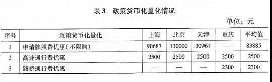 以典型城市為對象,定量分析支持政策的貨幣化收益,評價政策工具的承接力度,進而總體評估判斷行業(yè)發(fā)展所需的支持政策。按照政策類型劃分,我們設(shè)定不同的政策貨幣化模型。我們可以統(tǒng)一設(shè)置貨幣化模型,對不同支持政策其中,申請牌照費優(yōu)惠、路橋通行費優(yōu)惠、路權(quán)便利特權(quán)三項政策的貨幣化收益量化分析,參考崔洪陽、何卉、金伶芝、劉金周發(fā)表于2018年《新能源汽車藍皮書》中的《地方性新能源乘用車激勵政策量化評估》。的貨幣化收益進行量化,將貨幣化收益量化模型設(shè)定為: