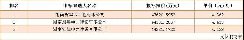 中國(guó)儲(chǔ)能網(wǎng)訊:2019年10月9日,澧縣李家門漁光互補(bǔ)100MW光伏發(fā)電項(xiàng)目工程EPC總承包中標(biāo)候選人公示。其中,湖南省第四工程有限公司,以總價(jià)43620.5952萬(wàn)元,單價(jià)4.362元/瓦,位列第一中標(biāo)候選人。