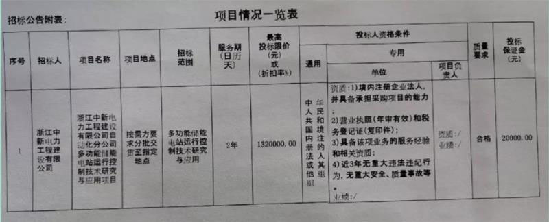浙江中新電力工程建設(shè)有限公司自動化分公司多功能儲能電站運行控制技術(shù)研究與應(yīng)用項目招標公告