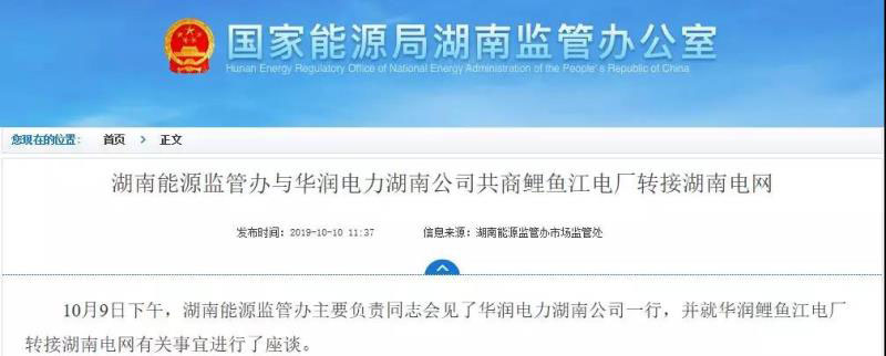 湖南能監(jiān)辦新聞稿稱,華潤(rùn)鯉魚(yú)江電廠地處湖南省南部,是“西電東送”項(xiàng)目,接入廣東電網(wǎng)。但是,湖南電力逐年緊缺,湘南地區(qū)嚴(yán)重缺乏電源支撐,無(wú)法承擔(dān)“西電東送”的功能。湖南能源監(jiān)管辦主要負(fù)責(zé)同志向國(guó)家能源局和省委省政府提出了將華潤(rùn)鯉魚(yú)江電廠轉(zhuǎn)接湖南電網(wǎng)的建議,得到上級(jí)領(lǐng)導(dǎo)的重視和支持。近期,湘粵兩省政府主要領(lǐng)導(dǎo)已就鯉魚(yú)江電廠轉(zhuǎn)接湖南電網(wǎng)形成共識(shí),并得到國(guó)家能源主管部門的認(rèn)同和支持。