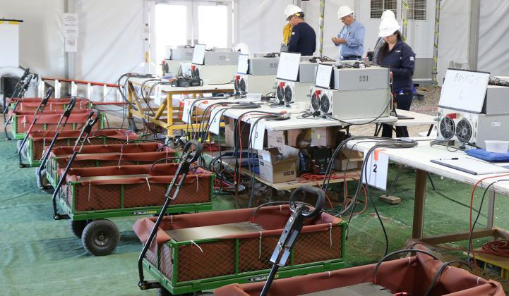 調(diào)查人員拆除每個(gè)機(jī)架的布線(xiàn),然后將電池模塊從機(jī)架中取出,然后將其放電。在此過(guò)程中由于季風(fēng)來(lái)襲,APS公司在現(xiàn)場(chǎng)還搭建了一個(gè)巨大的帳篷,以免受外界影響。