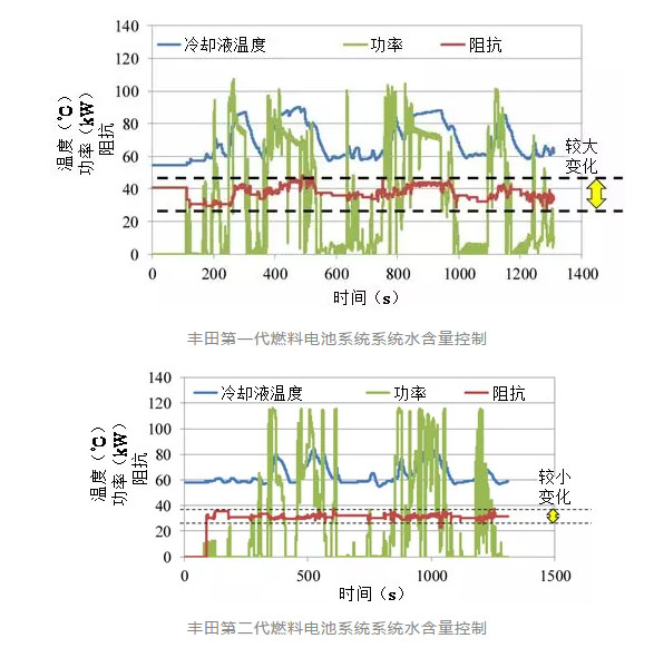 豐田燃料電池輸出性能與單片水含量關(guān)系