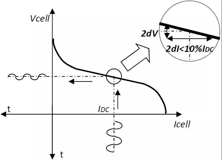 燃料電池單片輸出電流變化范圍為0到500A,根據(jù)交流阻抗測(cè)量的線性化要求,(在這里我們不區(qū)分電流激勵(lì)信號(hào)或電壓激勵(lì)信號(hào),只從測(cè)量原理角度進(jìn)行考慮),一般選擇交變電流激勵(lì)信號(hào)幅值是燃料電池穩(wěn)態(tài)輸出電流的1%到10%,工程上一般認(rèn)為5%是合理的測(cè)量范圍,那么實(shí)際應(yīng)用的交變電流激勵(lì)信號(hào)幅值在0到25A,當(dāng)然我們傾向于選擇5A到10A作為幅值。當(dāng)對(duì)燃料電池堆施加幅值為5A到10A的300Hz的交變電流激勵(lì)信號(hào)時(shí),燃料電池單片在穩(wěn)態(tài)輸出電壓的基礎(chǔ)上產(chǎn)生了一個(gè)幅值在0.5mV到5mV的交變電壓響應(yīng)信號(hào)。如果對(duì)燃料電池堆施加交變電壓響應(yīng)信號(hào)幅值為0.5mV到5mV,對(duì)應(yīng)的燃料電池堆在穩(wěn)態(tài)輸出電流的基礎(chǔ)上產(chǎn)生了一個(gè)幅值在5A到10A的交變電流響應(yīng)信號(hào)。兩種方式,無(wú)本質(zhì)區(qū)別。