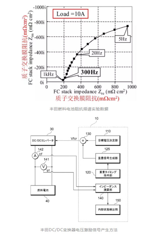 用交流阻抗估算燃料電池水含量有兩個(gè)重要環(huán)節(jié),第一是測(cè)量交流阻抗,第二是根據(jù)工作條件推測(cè)燃料電池水含量。下面以豐田公司技術(shù)為實(shí)例著重闡述第一個(gè)環(huán)節(jié)。