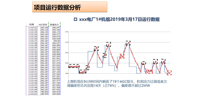 從項(xiàng)目的數(shù)據(jù)來(lái)分析,AGC的指令深度來(lái)看,小于9MW的有79%,小于4MW的有接近45.6%,9MW-11MW的指令占12%,雖然只占12%,但貢獻(xiàn)率超過(guò)了40%。