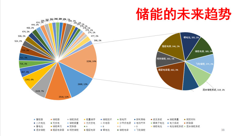 最后,我來(lái)介紹一下未來(lái)儲(chǔ)能調(diào)頻項(xiàng)目的發(fā)展趨勢(shì)及展望,這個(gè)圖是我統(tǒng)計(jì)了目前能在互聯(lián)網(wǎng)上檢索到和儲(chǔ)能相關(guān)正規(guī)出版的期刊論文、技術(shù)文章,大概有2萬(wàn)篇,我應(yīng)用大數(shù)據(jù)分析技術(shù),把關(guān)鍵詞整理出來(lái),里邊大概有3296篇講的是儲(chǔ)能技術(shù),因?yàn)橹v到很多,這是直接和儲(chǔ)能技術(shù)路線相關(guān),摘出來(lái)以后,未來(lái)講得比較多的是右邊的餅狀圖。飛輪儲(chǔ)能、混合儲(chǔ)能系統(tǒng),混合儲(chǔ)能的關(guān)鍵詞數(shù)量達(dá)到了1/3的占比,廣東院推廣的混合儲(chǔ)能方案用的是飛輪儲(chǔ)能+鋰電池儲(chǔ)能,飛輪儲(chǔ)能壽命相比超級(jí)電容有非常大的優(yōu)勢(shì),超級(jí)電容也是化學(xué)儲(chǔ)能的一種,在安全性上也是存在一定的風(fēng)險(xiǎn)。