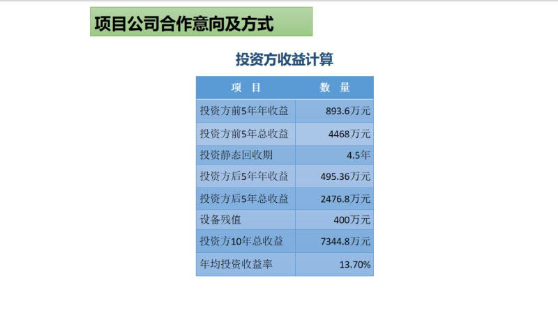 這個(gè)表比較關(guān)鍵,投資方的收益計(jì)算,大概能做到13.7%的收益率,這個(gè)收益率相對(duì)幾千萬(wàn)的收益量級(jí),已經(jīng)很不錯(cuò)了。