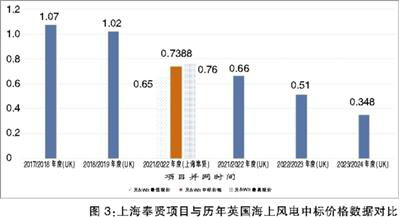 開工時間差。國內(nèi)海上風(fēng)電項目從獲得海域使用權(quán)到項目投產(chǎn)發(fā)電一般周期為三年,而英國本輪項目并網(wǎng)時間是2023-2024年,其項目中標報價包含對未來成本下降的預(yù)期。上海奉賢作為國內(nèi)首個海上風(fēng)電競價項目,五家申報單位報價為0.65元/kWh至0.76元/kWh,中標價格為0.7388元/kWh。就目前的政策環(huán)境看來,這個價格預(yù)期是基于2021-2022年建成的電價,若將此價格與歷年來英國風(fēng)電中標價格進行比較,可以發(fā)現(xiàn)目前國內(nèi)的海上風(fēng)電價格在比較合理的成本區(qū)間內(nèi)。在未來海上風(fēng)電項目上網(wǎng)電價方面,根據(jù)彭博新能源預(yù)測,中英海上風(fēng)電上網(wǎng)價格未來下降幅度與絕對價格水平也基本相當(dāng)。