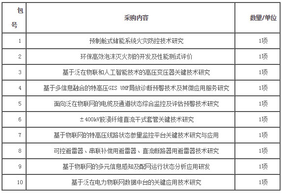 南瑞集團2019年第四批《預制艙式儲能系統(tǒng)火災防控技術(shù)研究》等10個科技項目采購