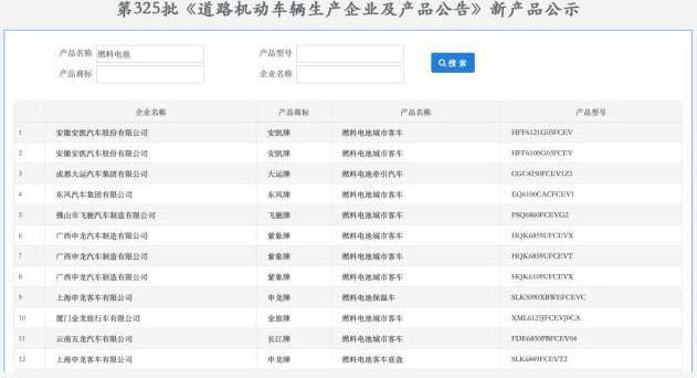 中國儲能網訊:10月17日,工業(yè)和信息化部在官方網站公示了申報第325批《道路機動車輛生產企業(yè)及產品公告》(簡稱《公告》)顯示,共有10款燃料電池客車(含底盤)入選。