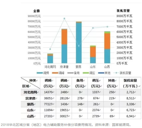 2018華北區(qū)域分?。ǖ貐^(qū))電力輔助服務(wù)補(bǔ)償分項(xiàng)費(fèi)用情況。資料來(lái)源:國(guó)家能源局。