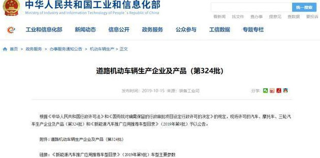 中國儲(chǔ)能網(wǎng)訊:昨日,工業(yè)和信息化部在官方網(wǎng)站公告了申報(bào)第324批《道路機(jī)動(dòng)車輛生產(chǎn)企業(yè)及產(chǎn)品》以及第9批《新能源汽車應(yīng)用推廣應(yīng)用目錄車型》車型參數(shù)。