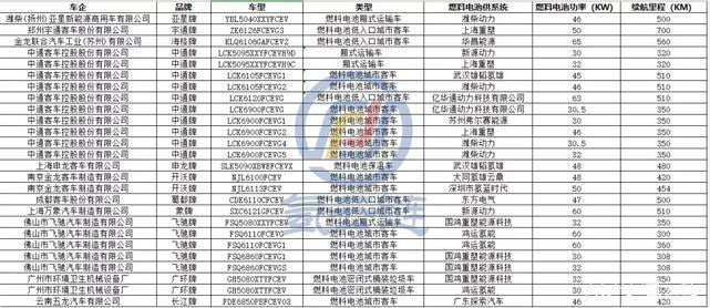 圖1 :第9批燃料電池汽車推薦目錄列表