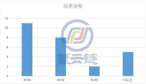 最后,在功率分布方面,30-40Kw的占據(jù)了11款,40-50Kw的也有8款上榜,不過氫云鏈分析發(fā)現(xiàn),此次上榜的車型有幾款都是321、322等批次公告產(chǎn)品,故而在電堆功率方面,沒有較大的提升與裝備。
