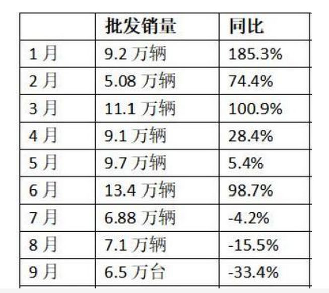 而來自全國乘用車市場信息聯(lián)席會(以下簡稱乘聯(lián)會)的最新數(shù)據(jù)顯示,9月新能源乘用車批發(fā)銷量6.5萬臺,同比下降33.4%,這是也新能源汽車罕見的出現(xiàn)連續(xù)三個月同比下滑。