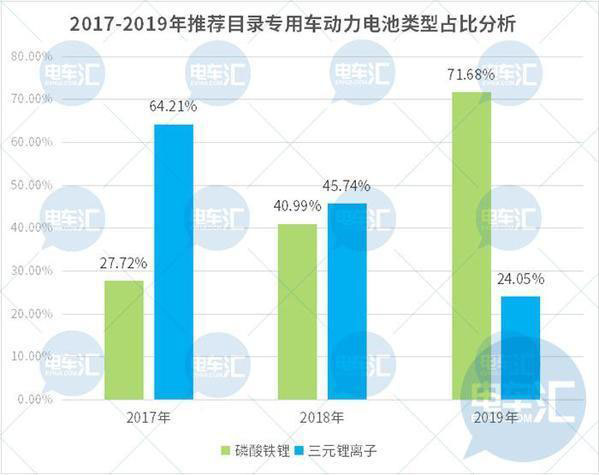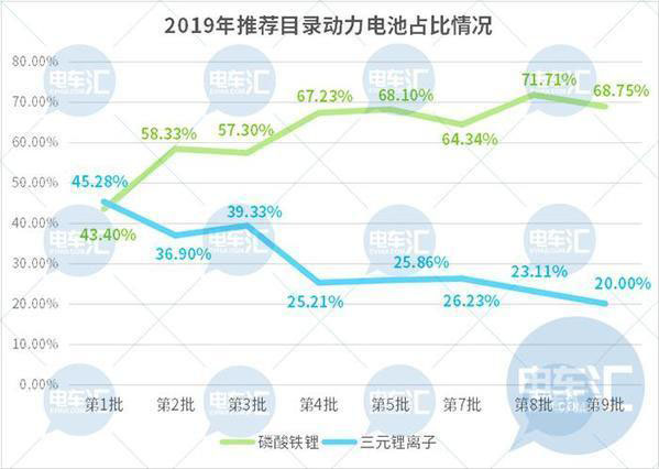 此外,從2019年工信部已經(jīng)發(fā)布的數(shù)批目錄來看,磷酸鐵鋰電池配套裝車占比也在逐步提升。